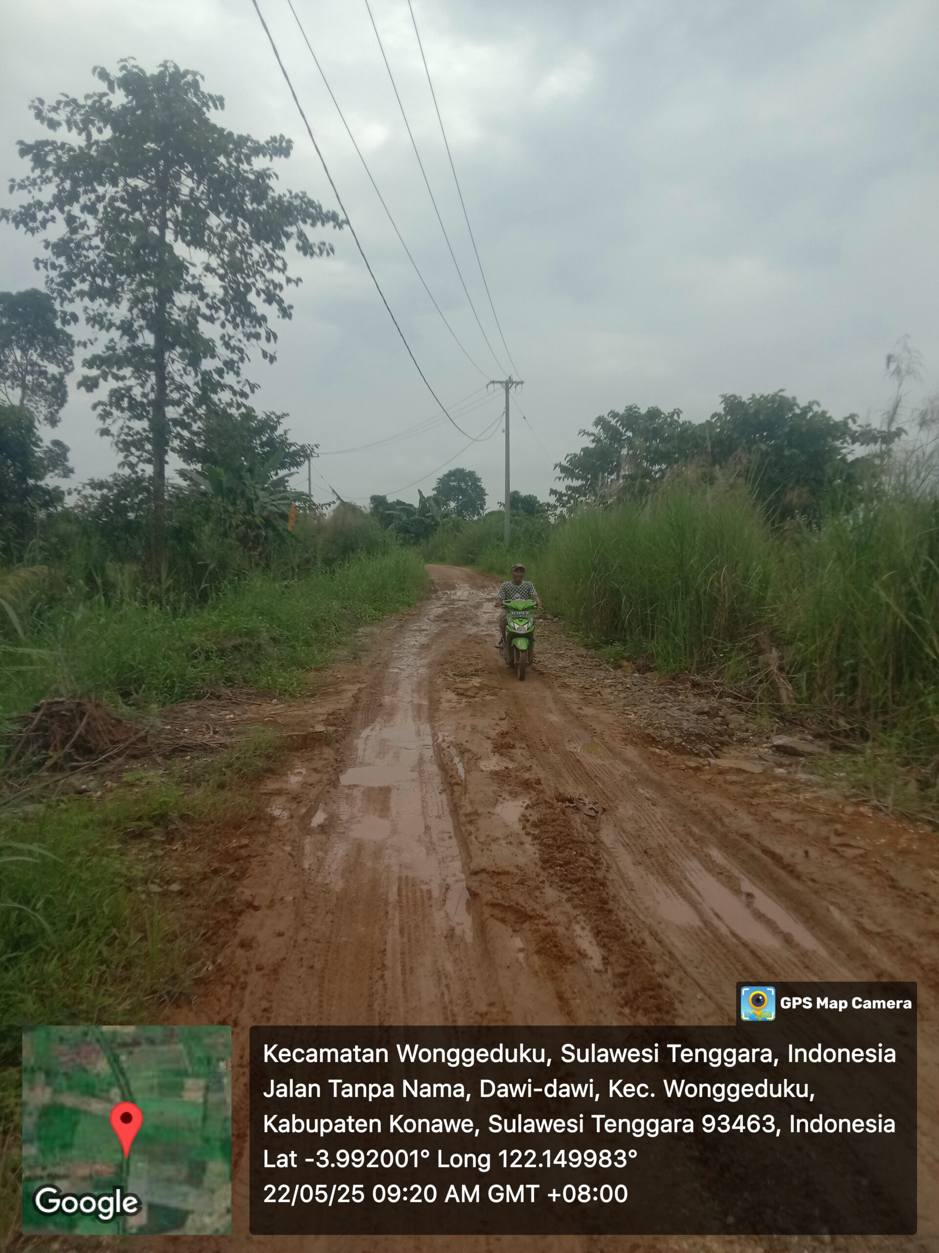Konawe,ruangaspirasi.com- proyek pekerjaan jalan kerikil penghubung antara desa dawi dawi – desa langgonawe yang menggunakan anggaran apbd kabupaten konawe tahun 2024 di duga asal di kerja. Proyek pekerjaan dengan volume 4.8km ini menghabiskan anggaran yang sangat fantastik sebesar 1,2 miliyar rupiah.